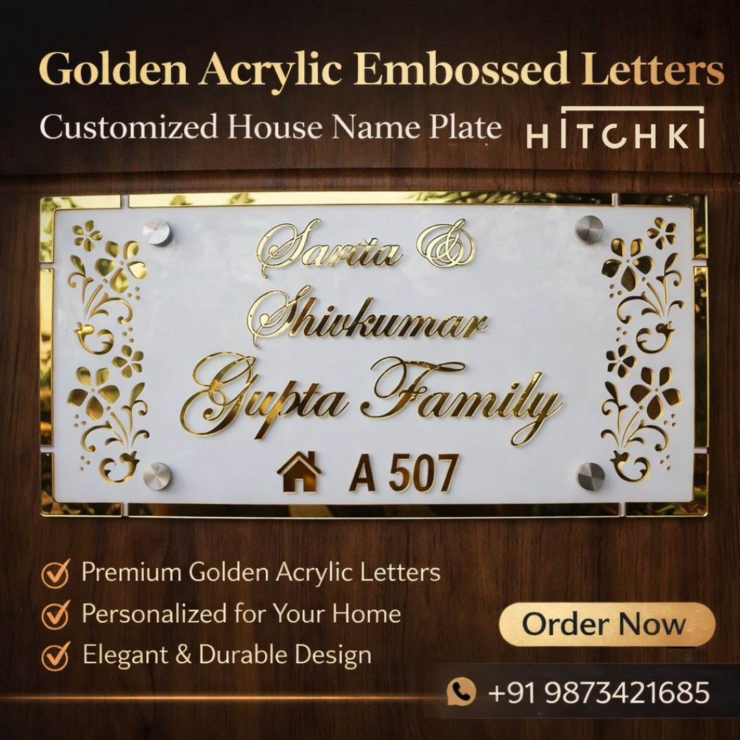 The Golden Acrylic Embossed Letters Name Plate from Hitchki is a perfect blend of modern design, durability, and personalization. In this detailed guide, we will explore everything you need to know about this premium nameplate including features, benefits, customization options, installation, and why it’s a top choice for modern homes. Explore more acrylic nameplates from hitchki.in