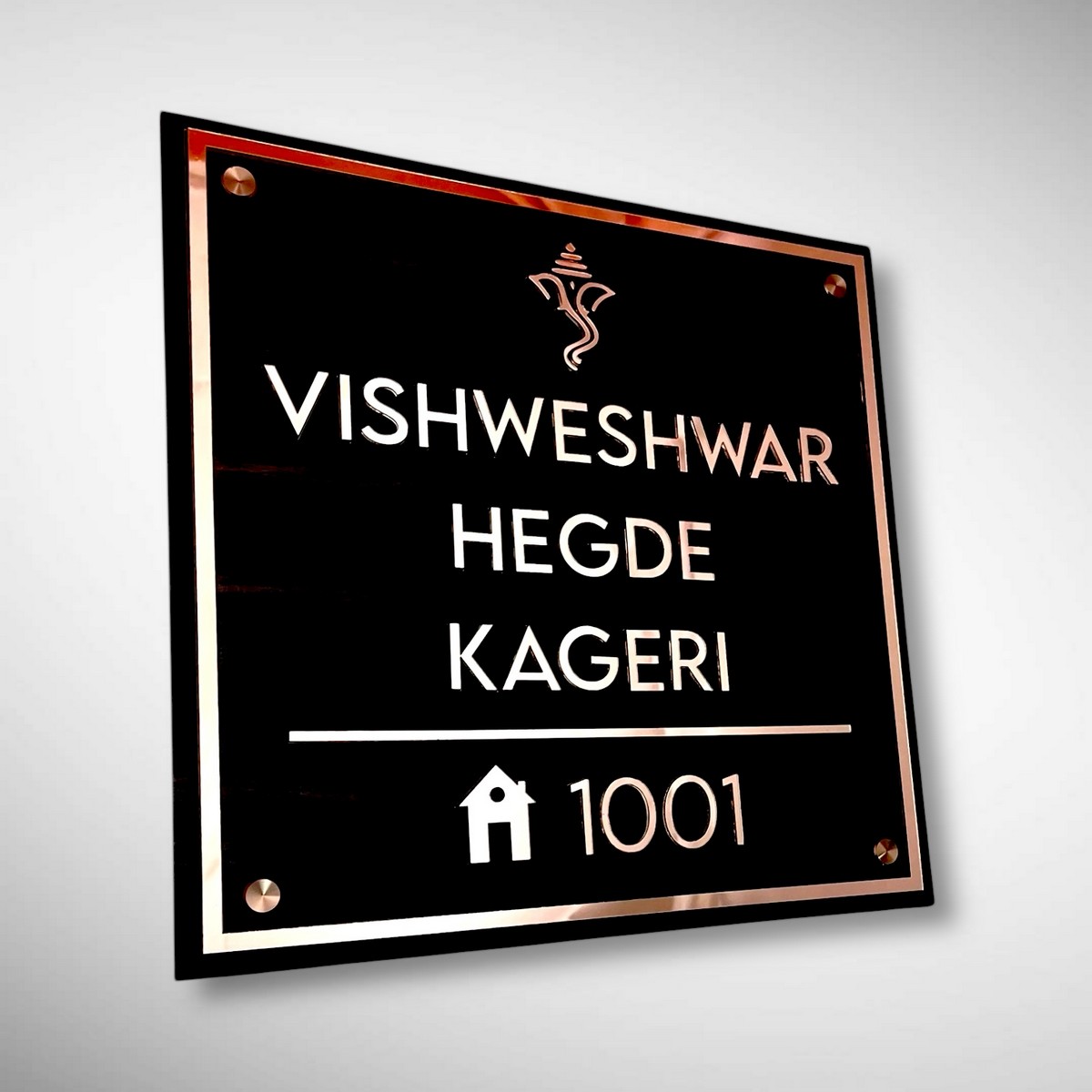 Upgrade your entrance with a black ACP-based nameplate featuring raised acrylic letters, crafted for durability and contemporary style. The ACP base offers excellent weather resistance, while the acrylic lettering provides a sharp, professional finish.