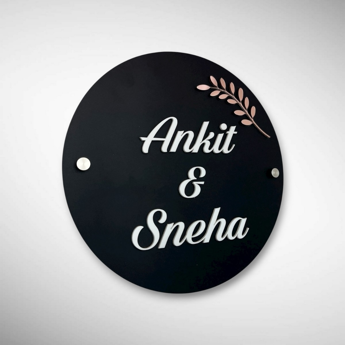 Customizable with names like Ankit & Sneha, this nameplate is suitable for flats, bungalows, and office entrances. Built with durable, weather-resistant acrylic, it maintains its elegance even in outdoor conditions.