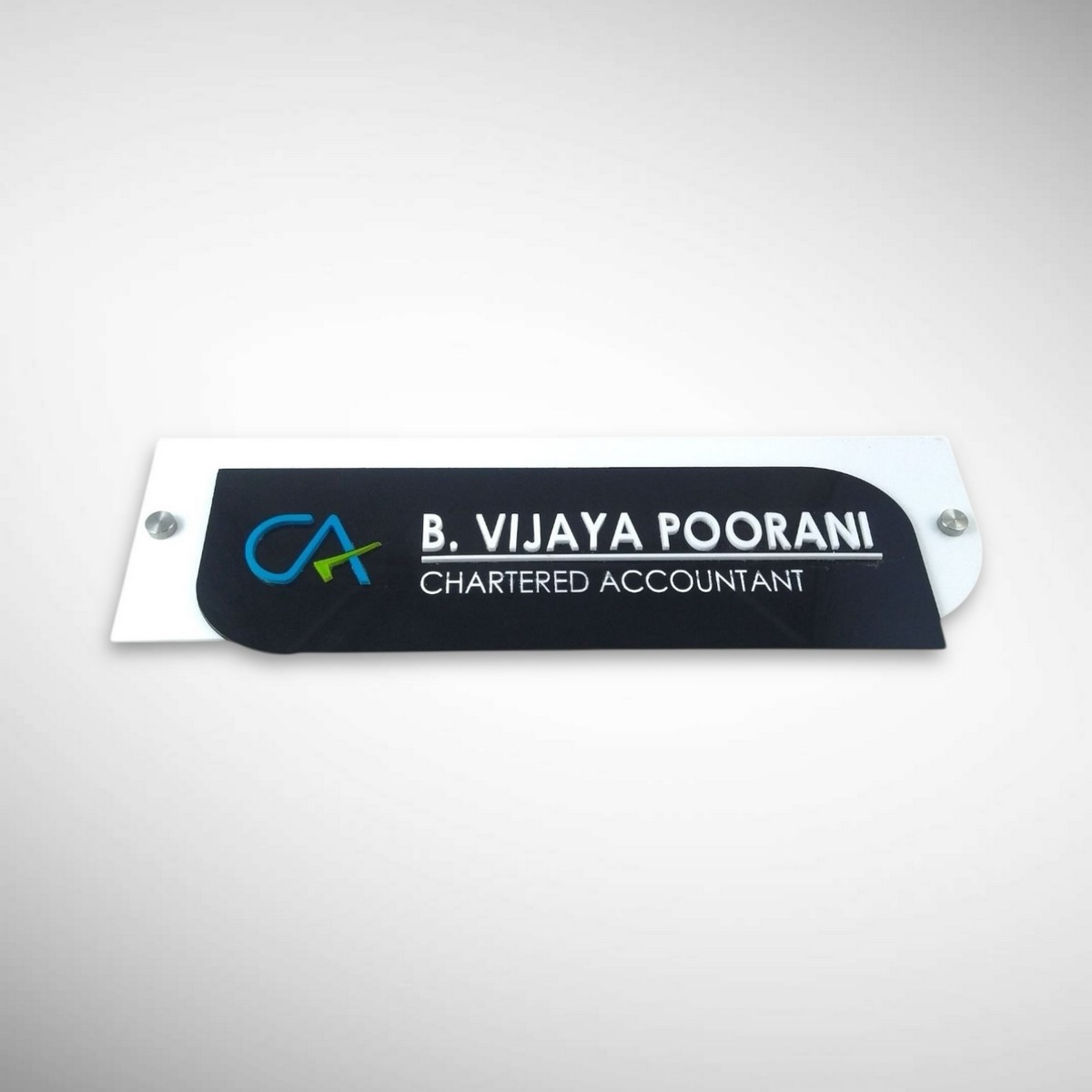 Upgrade your home entrance with this Black & White Acrylic Nameplate, crafted on a high-quality acrylic base and finished with raised acrylic letters for a clean, professional look. The monochrome color palette complements modern, minimalist, and corporate-style homes effortlessly.