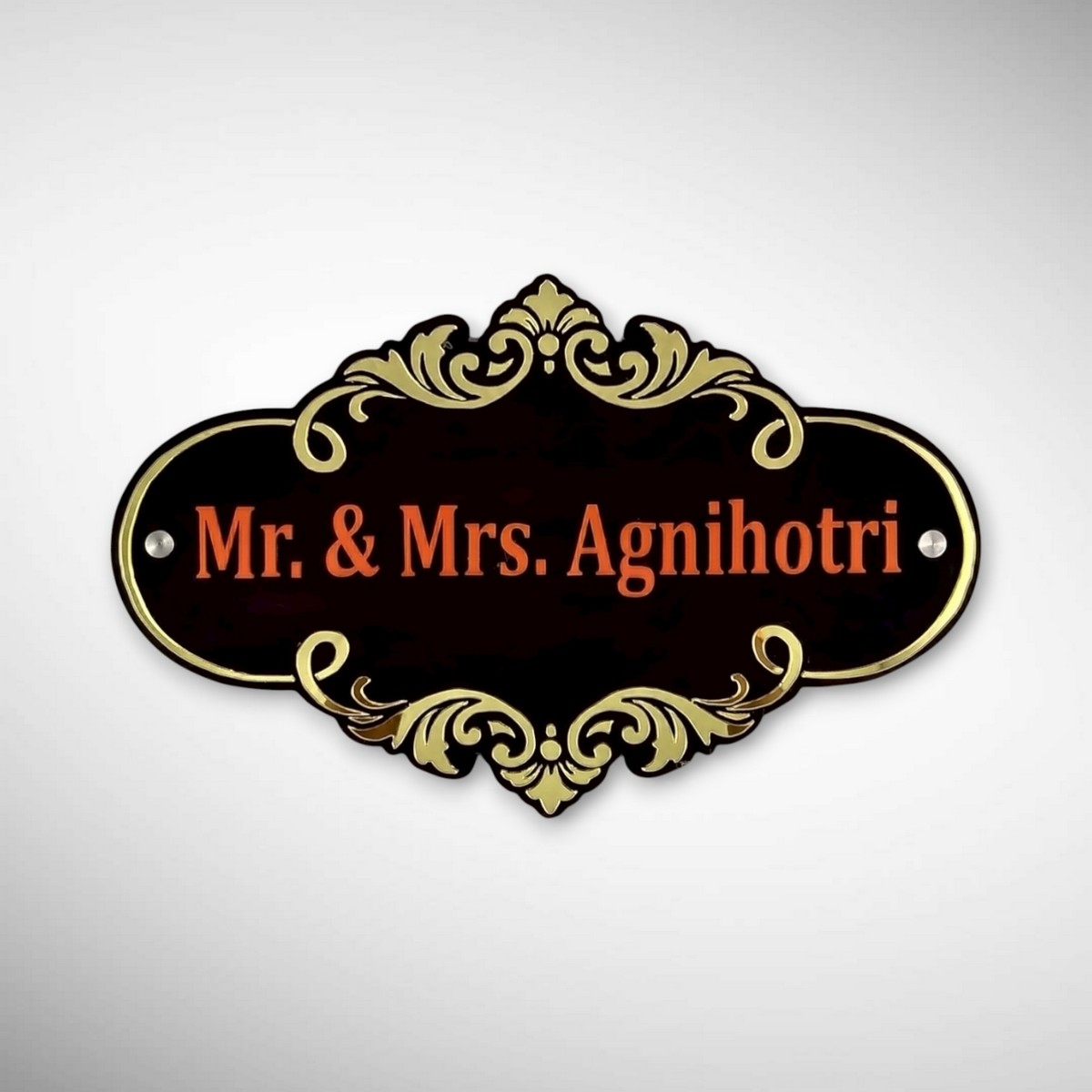 Customized Rubber Wood Brown Polish Nameplate for Home – Agnihotri