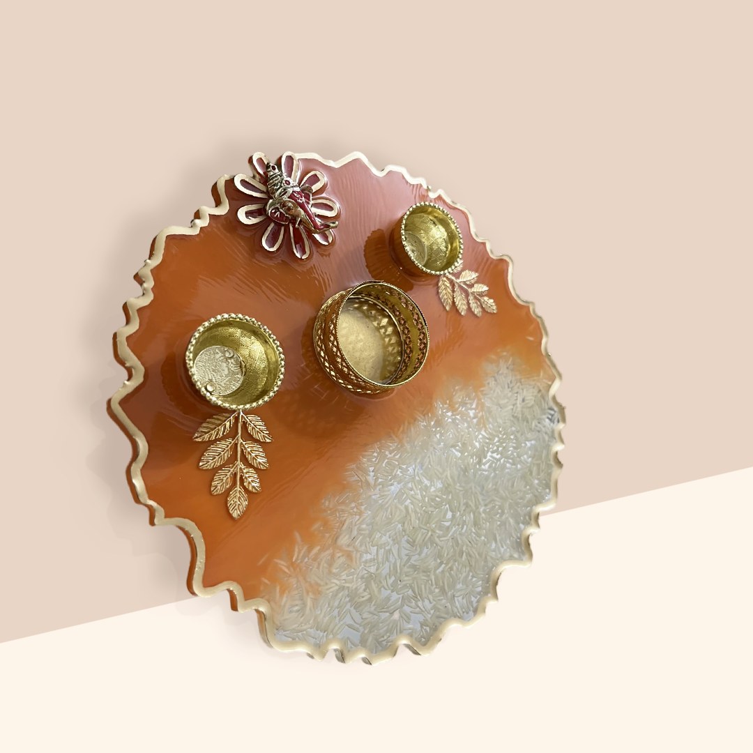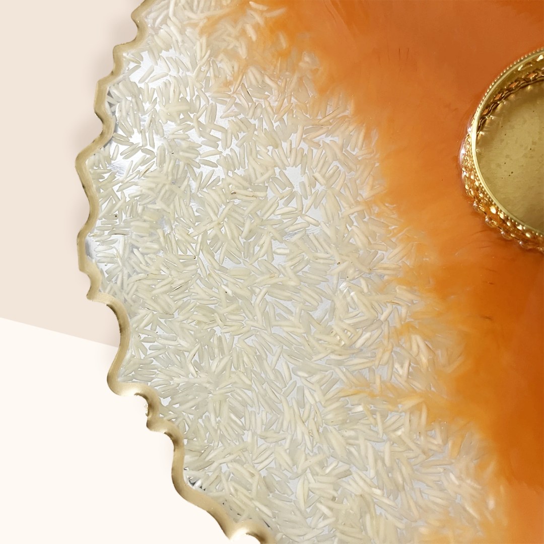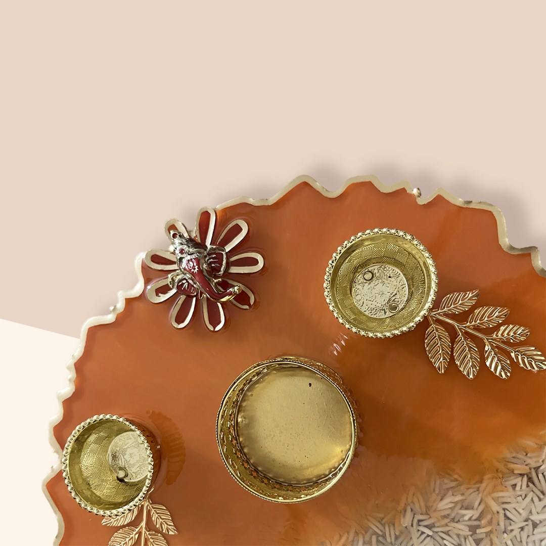 – Vibrant Orange Finish: The thali’s radiant orange hue evokes warmth and spiritual vitality, making it a standout centrepiece for any pooja setup.