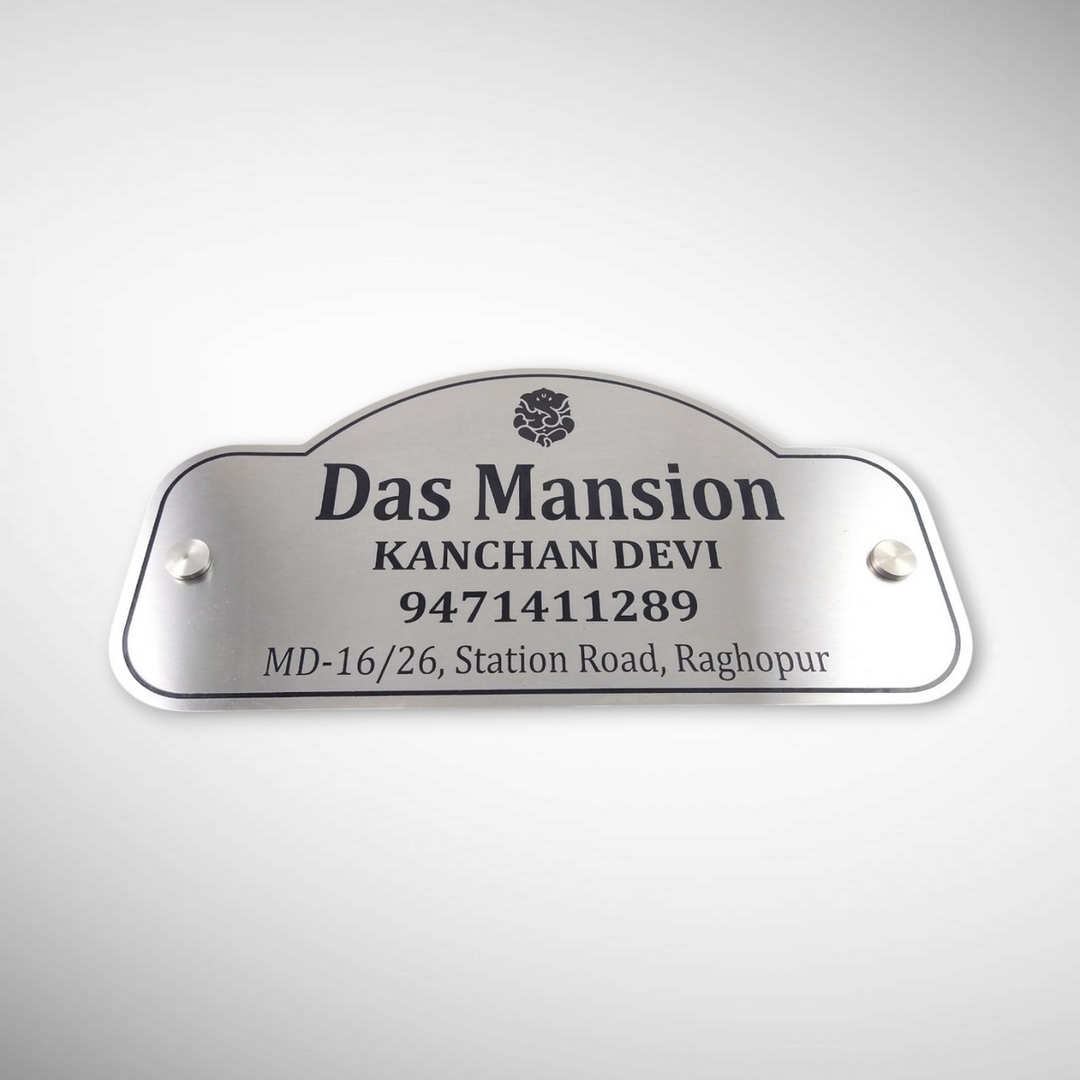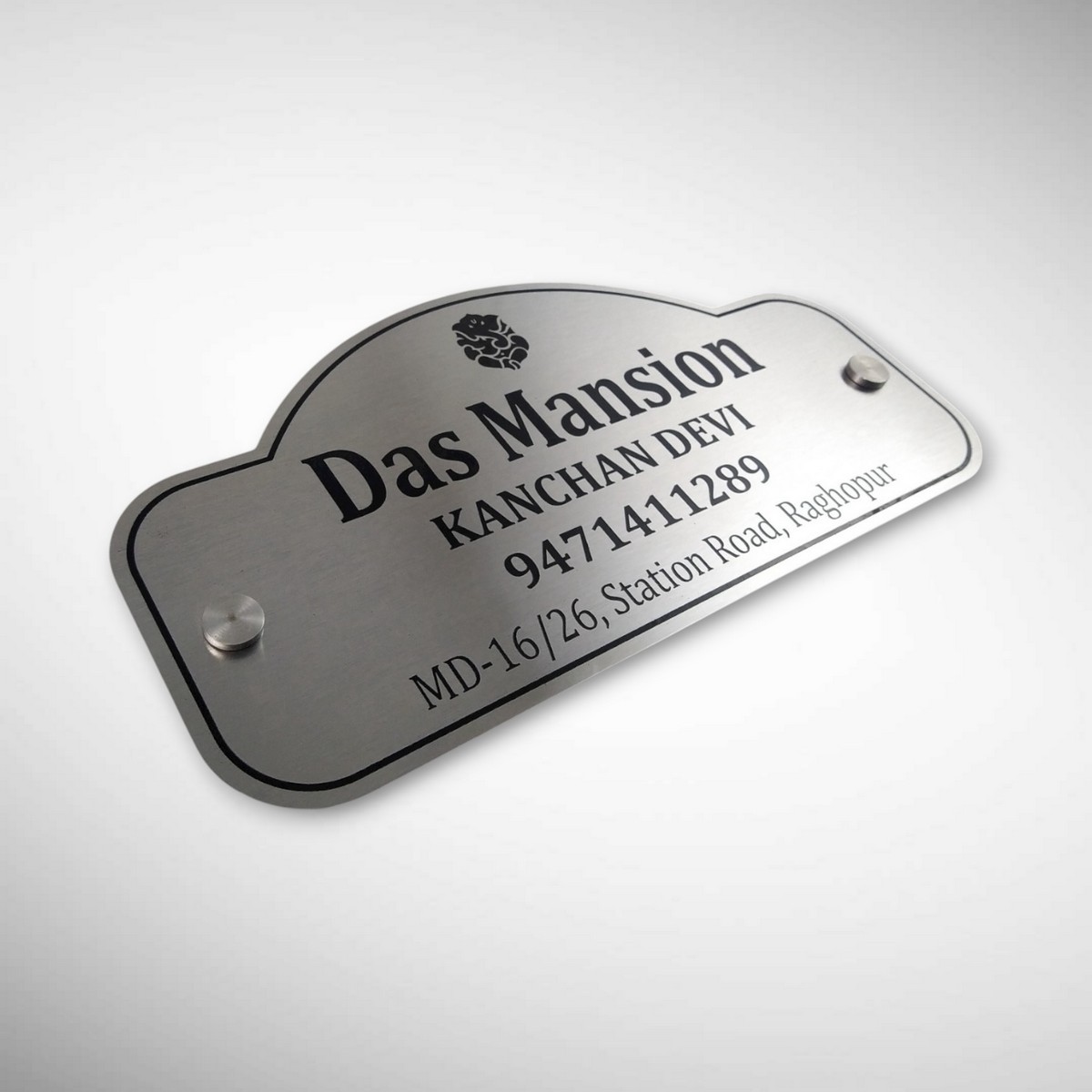 Each detail is laser-cut to perfection, while the etched lettering adds depth and elegance. The Duco paint finish enhances the richness of the metal, giving it a refined, long-lasting sheen that resists fading and weathering. Personalized with the name “M Rajshekhar”, this nameplate reflects individuality, pride, and timeless taste.
