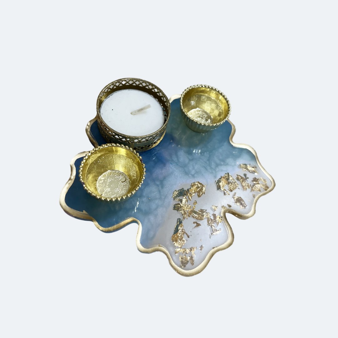 Flower Design New Mini Pooja Platter | Handcrafted with Resin Finish