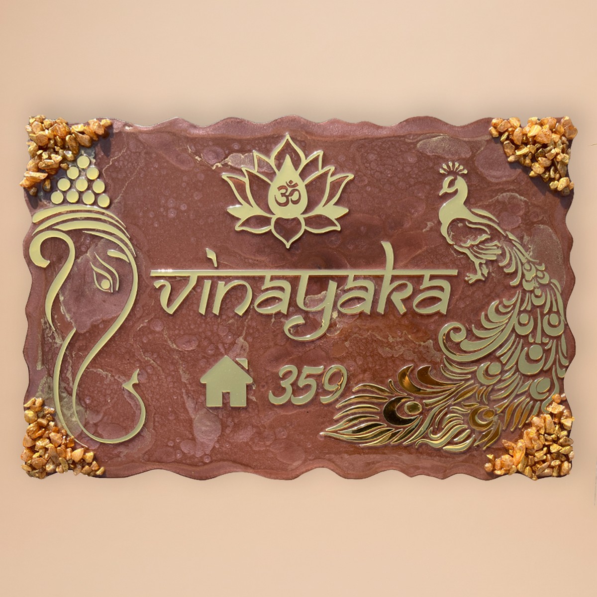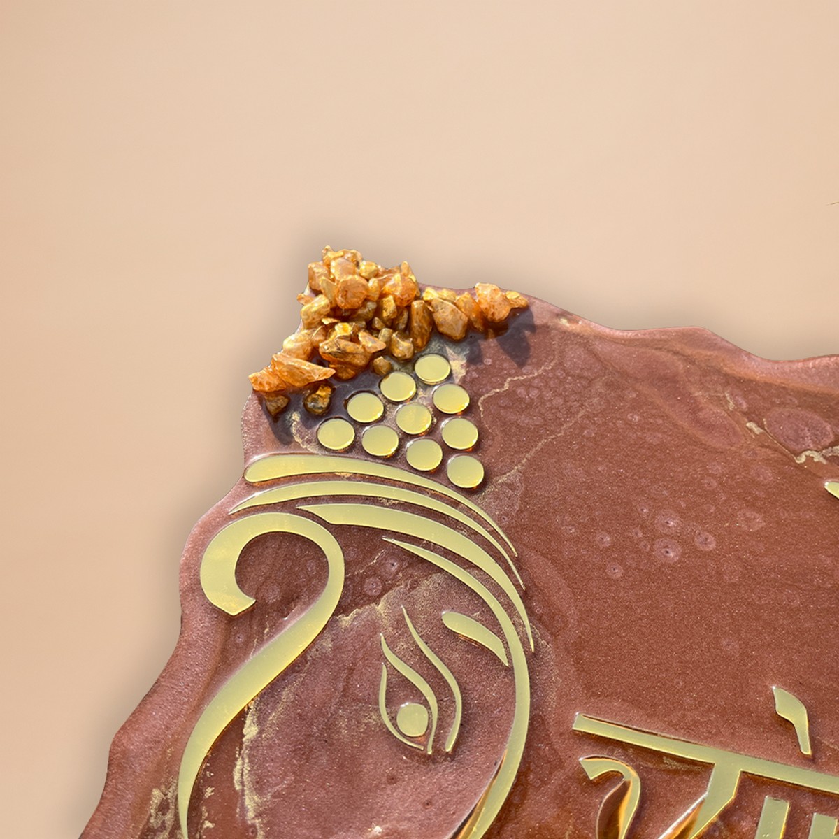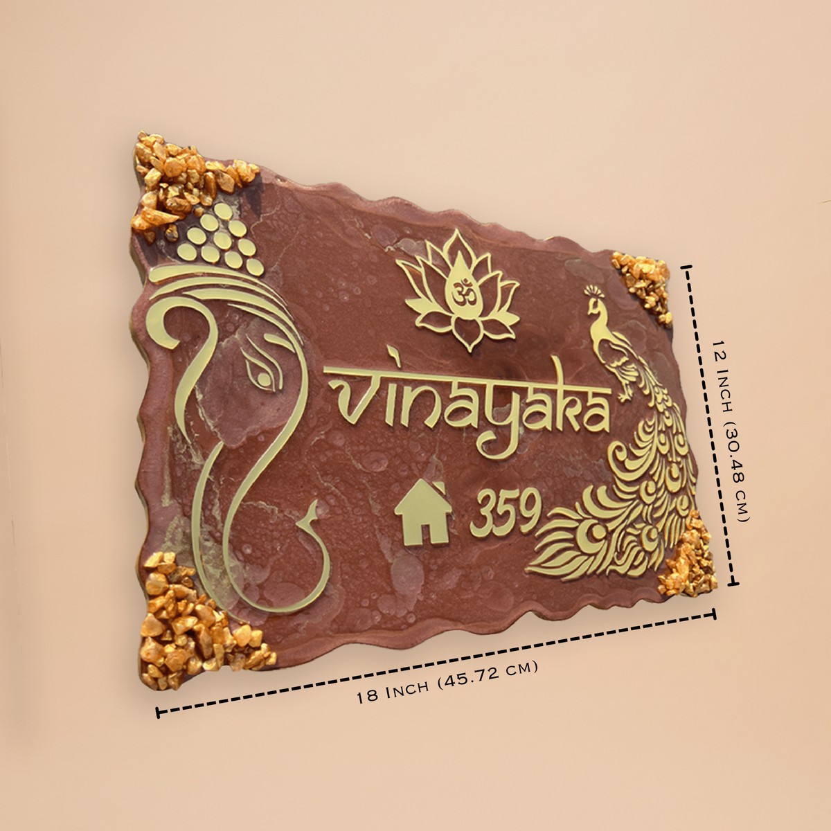 Ganesha Theme Metallic Brown Resin Coated Nameplate