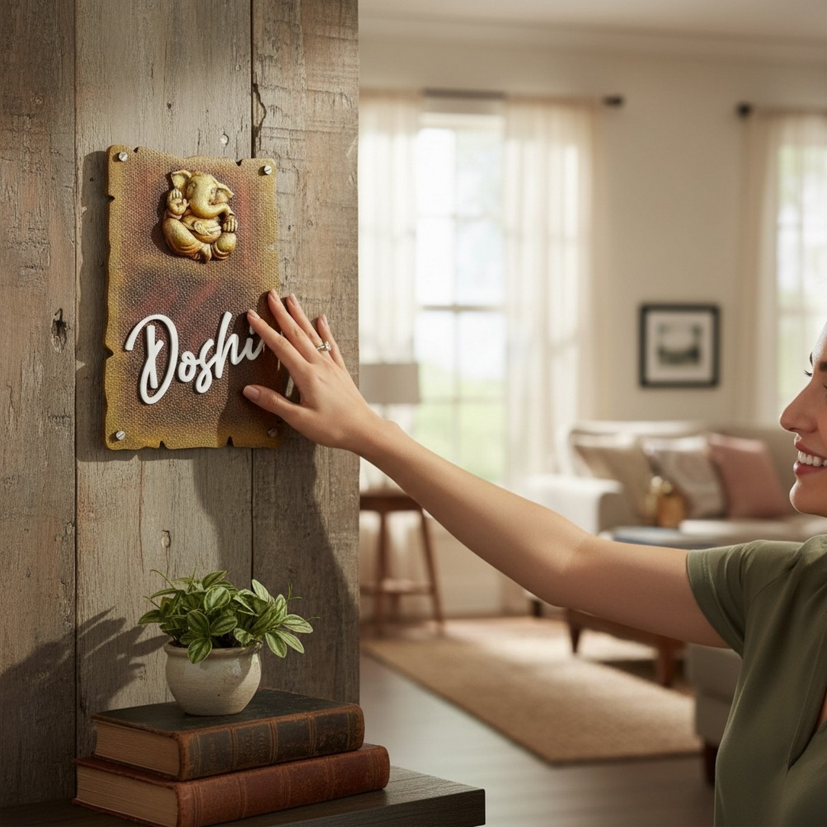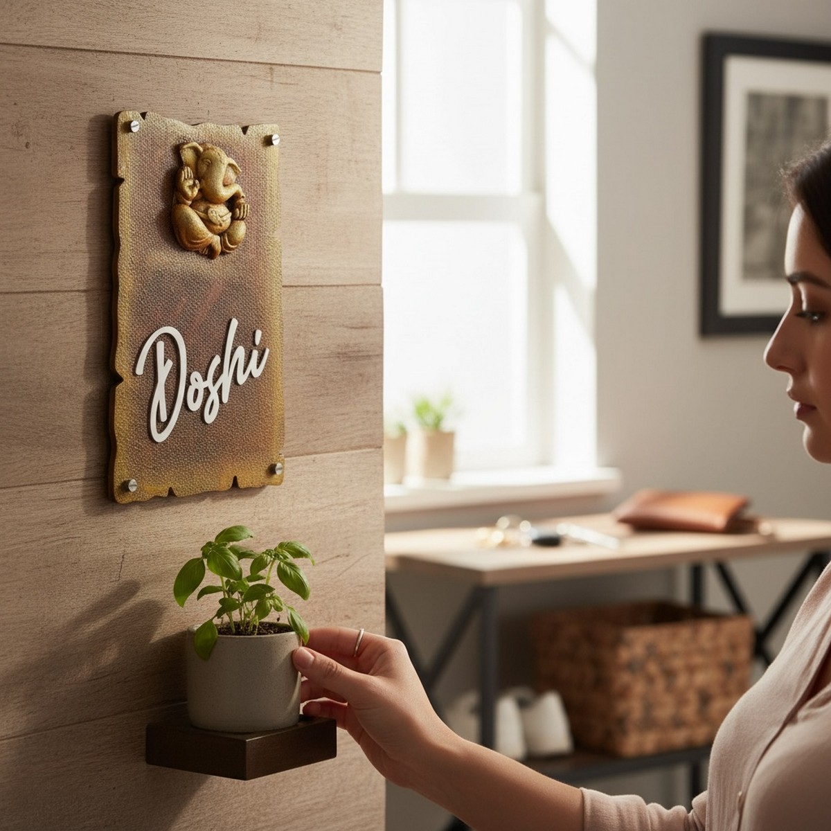 Handcrafted Ganesh Murti Nameplate for Home Entrance | Doshi