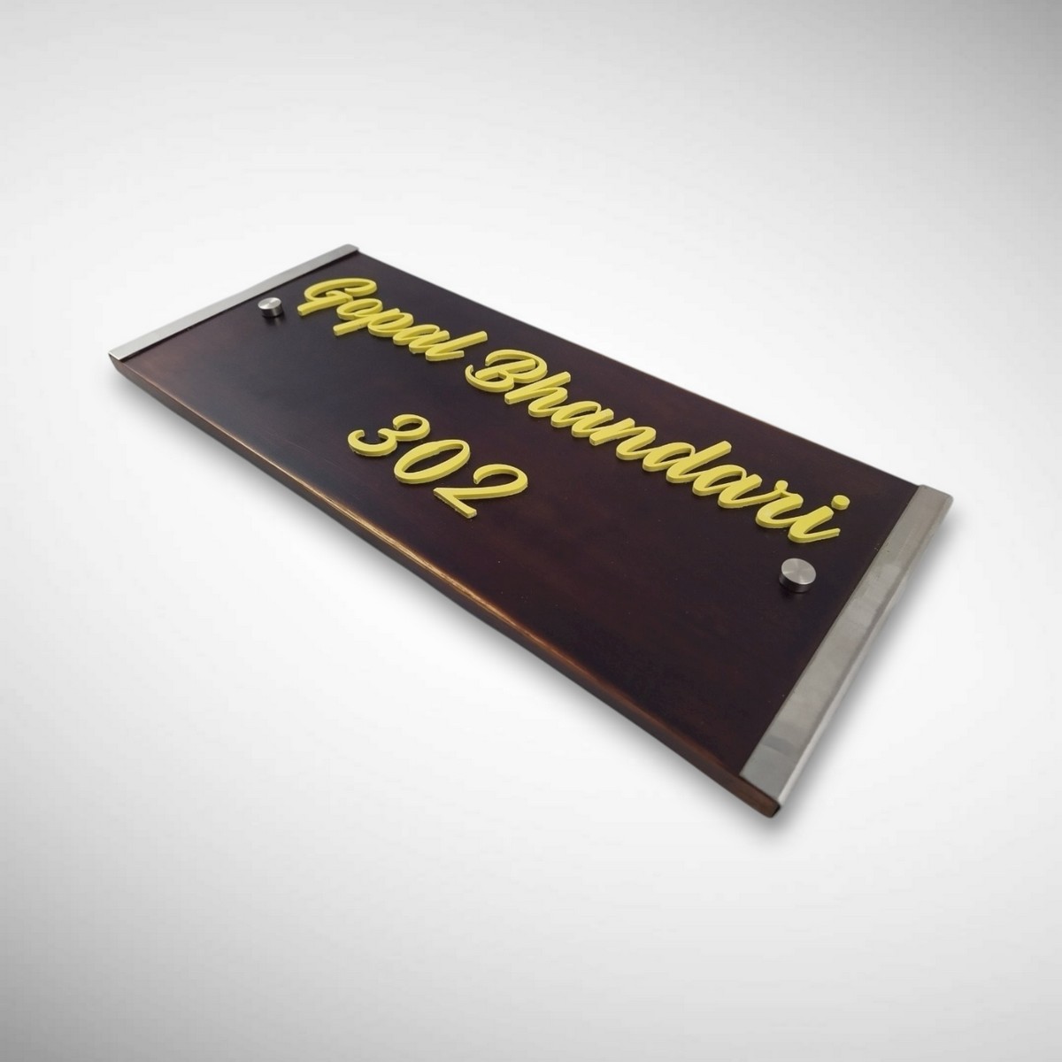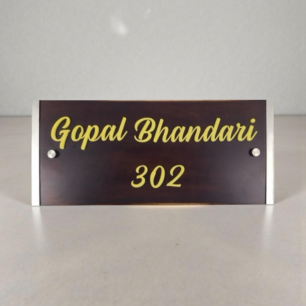Handcrafted Wooden Stylish Nameplate for Home – Bhandari