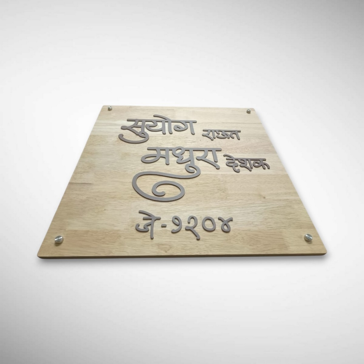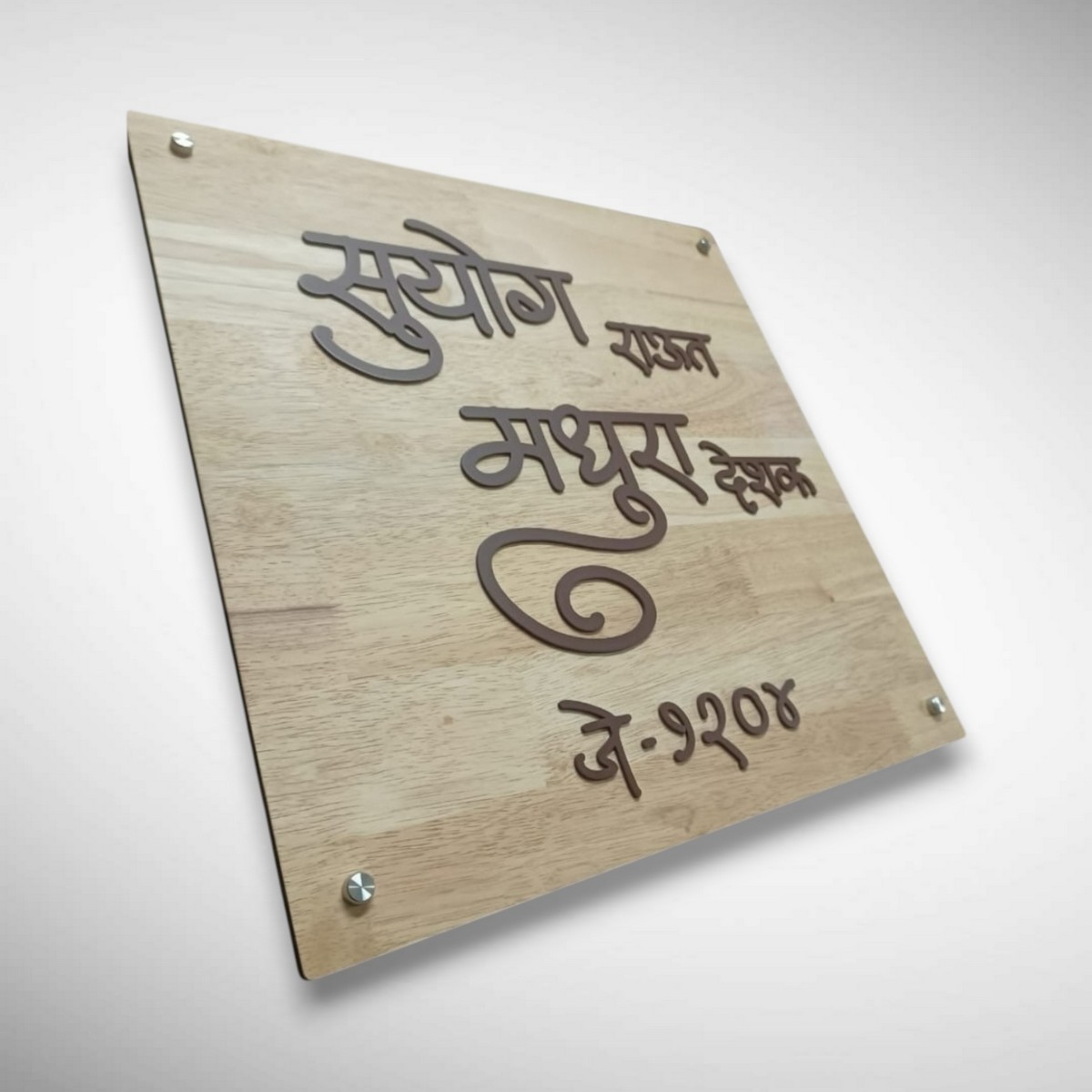 Handcrafted Wooden Stylish Nameplate for Home | Suyog Madhura