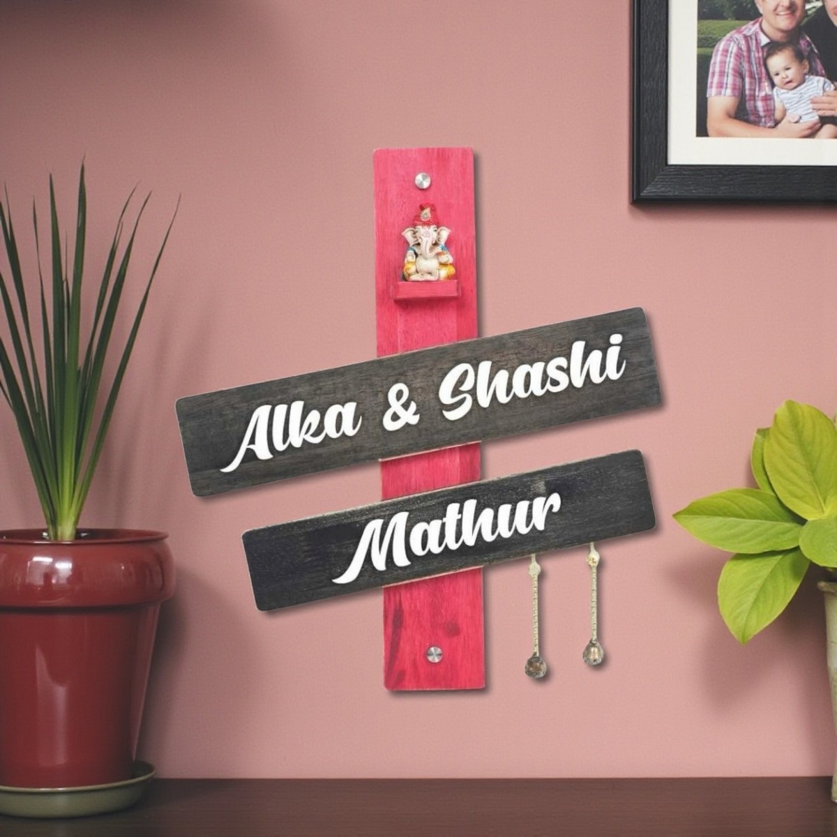 Perfect for house entrances, apartments, villas, or gifting, this customized wooden nameplate adds a personal touch to your space while reflecting your family identity.