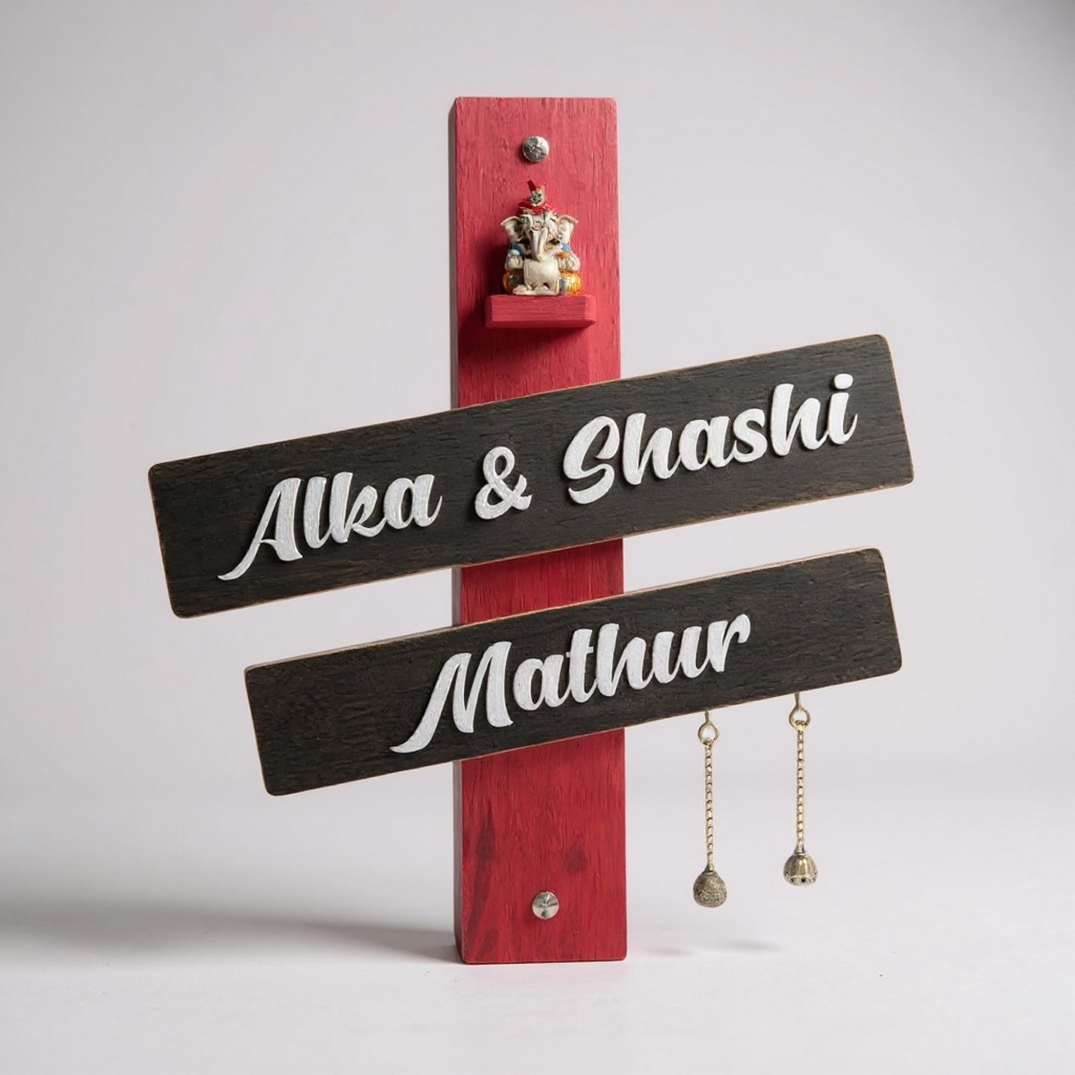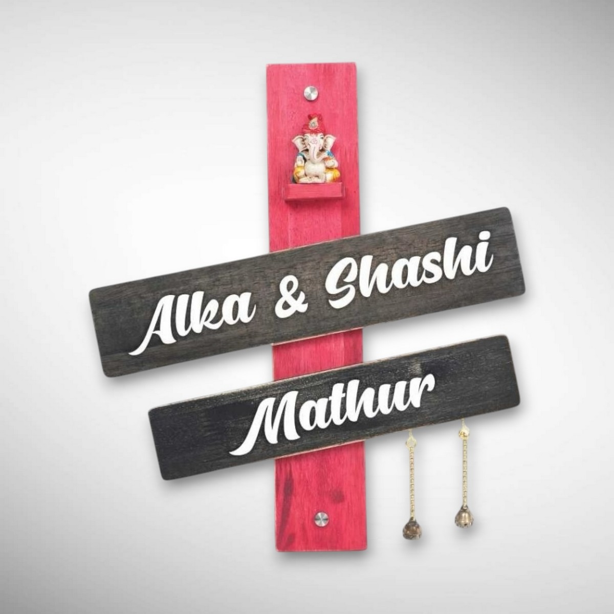 This handcrafted wooden stylish nameplate for Mathur family is designed to enhance your home’s entrance with elegance and tradition. Made from high-quality wood, it features stylish lettering and a durable finish that complements modern and traditional Indian homes.