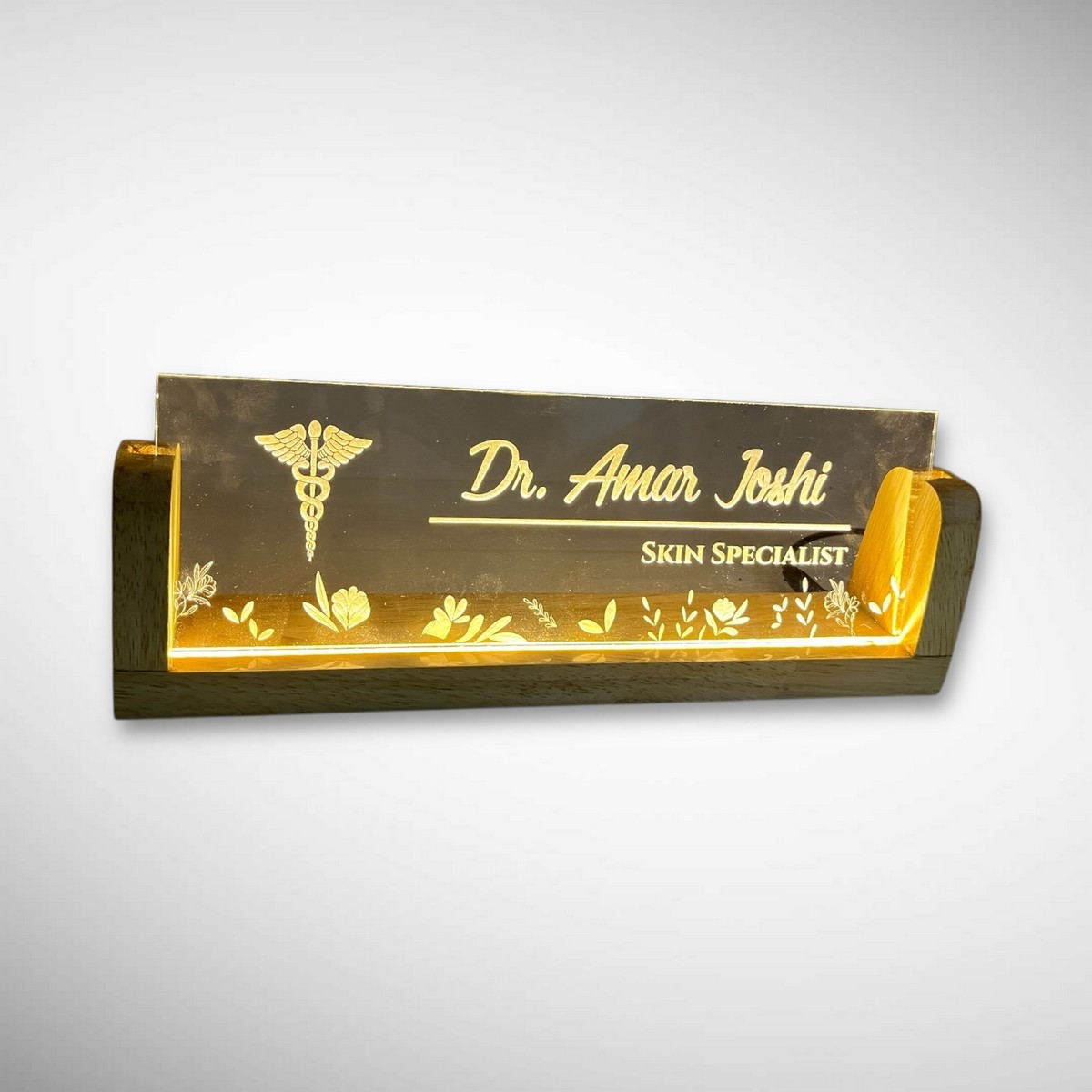 Make a powerful first impression with the Illuminati LED Desk Nameplate – a symbol of professionalism, trust, and prestige. Designed especially for clinics and medical chambers, this elegant nameplate features soft LED illumination that highlights your name and designation beautifully, even in low-light environments.