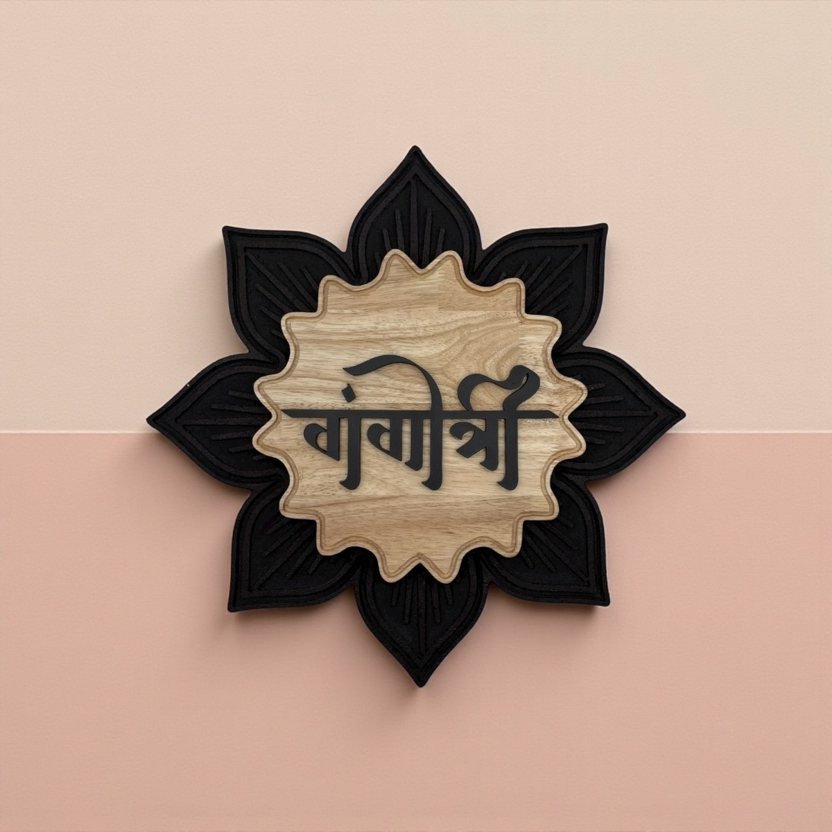 Lotus-Shaped Wooden Nameplate | Handcrafted Gangotri Design