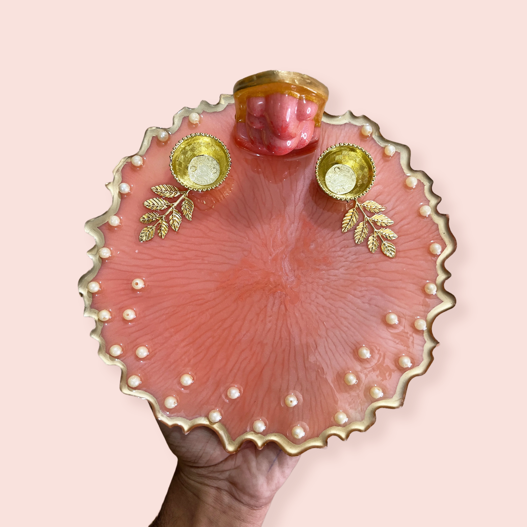 New 3D Ganesha Pink Pooja Thali | Metallic Pink Finish