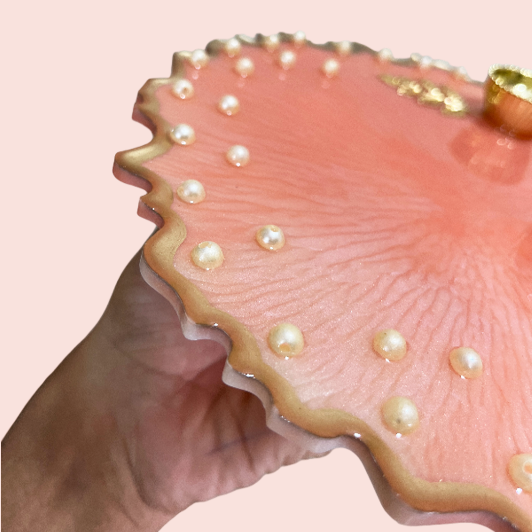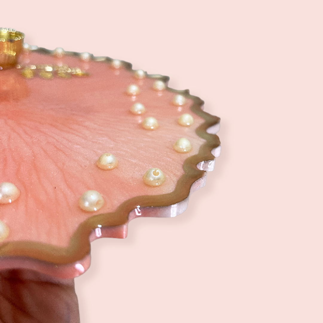 - Material Used: Resin used as base (5-6mm of thickness). Casted with golden shiny 3D Flowers.