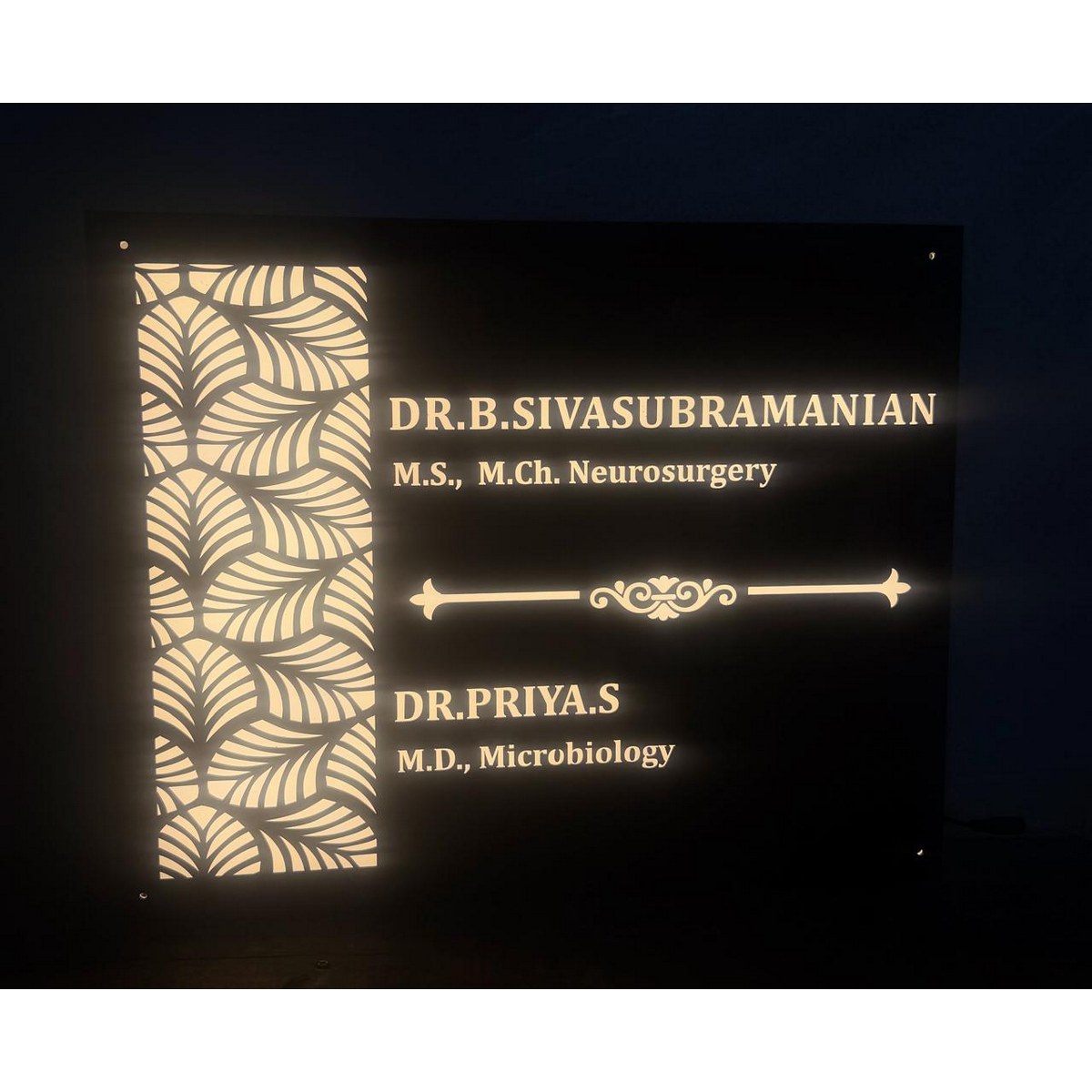 This is a LED nameplate. Size – 20 x 16 INCHES.