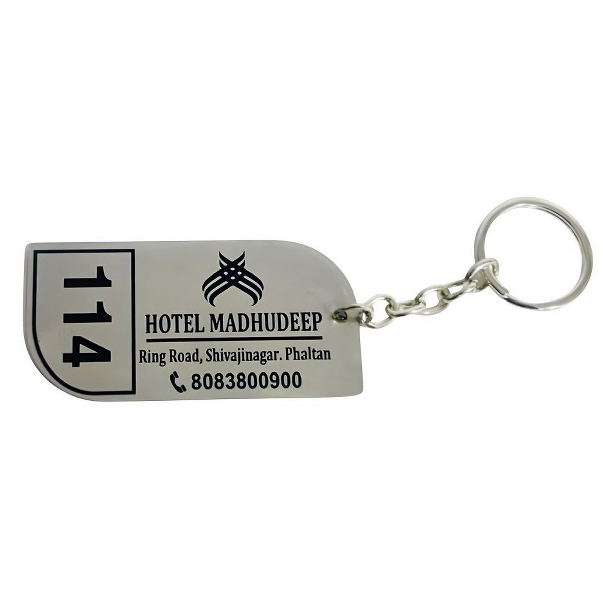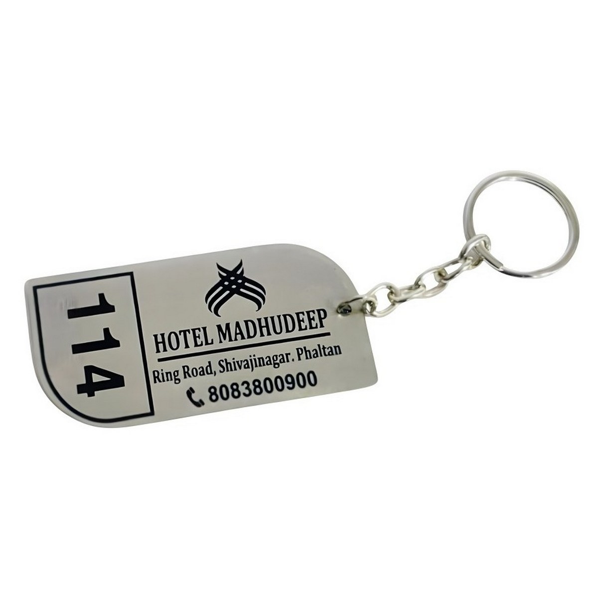 New Hotel Madhudeep Stainless Steel Engraved Keychains