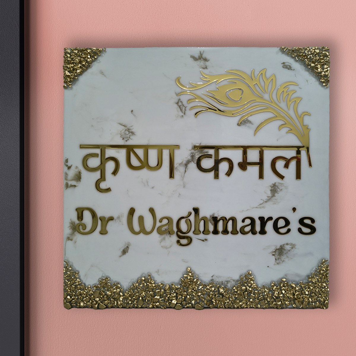 This handmade name plate is made up of premium epoxy resin material, with glossy finish, Available in many languages.