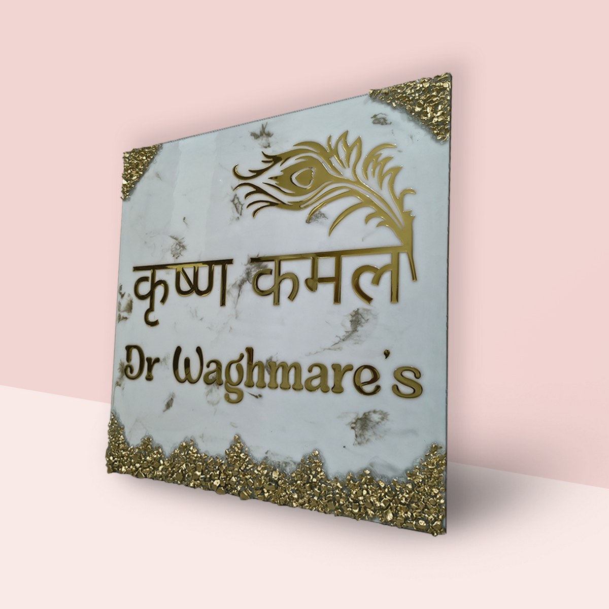New Krishna Theme White Textured Resin Coated Nameplate