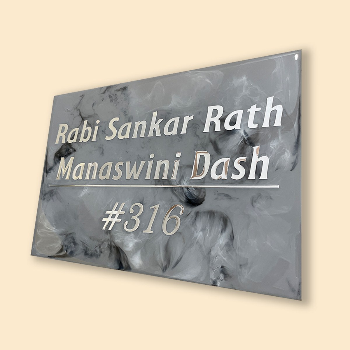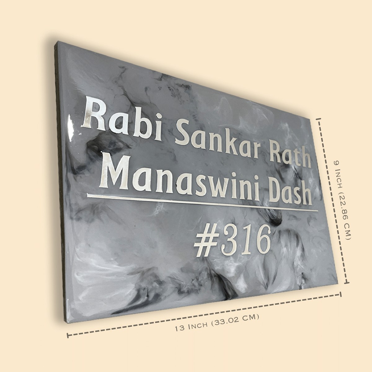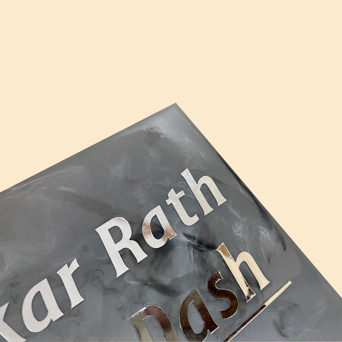 Metallic Grey and Black Theme Resin Coated Nameplate.