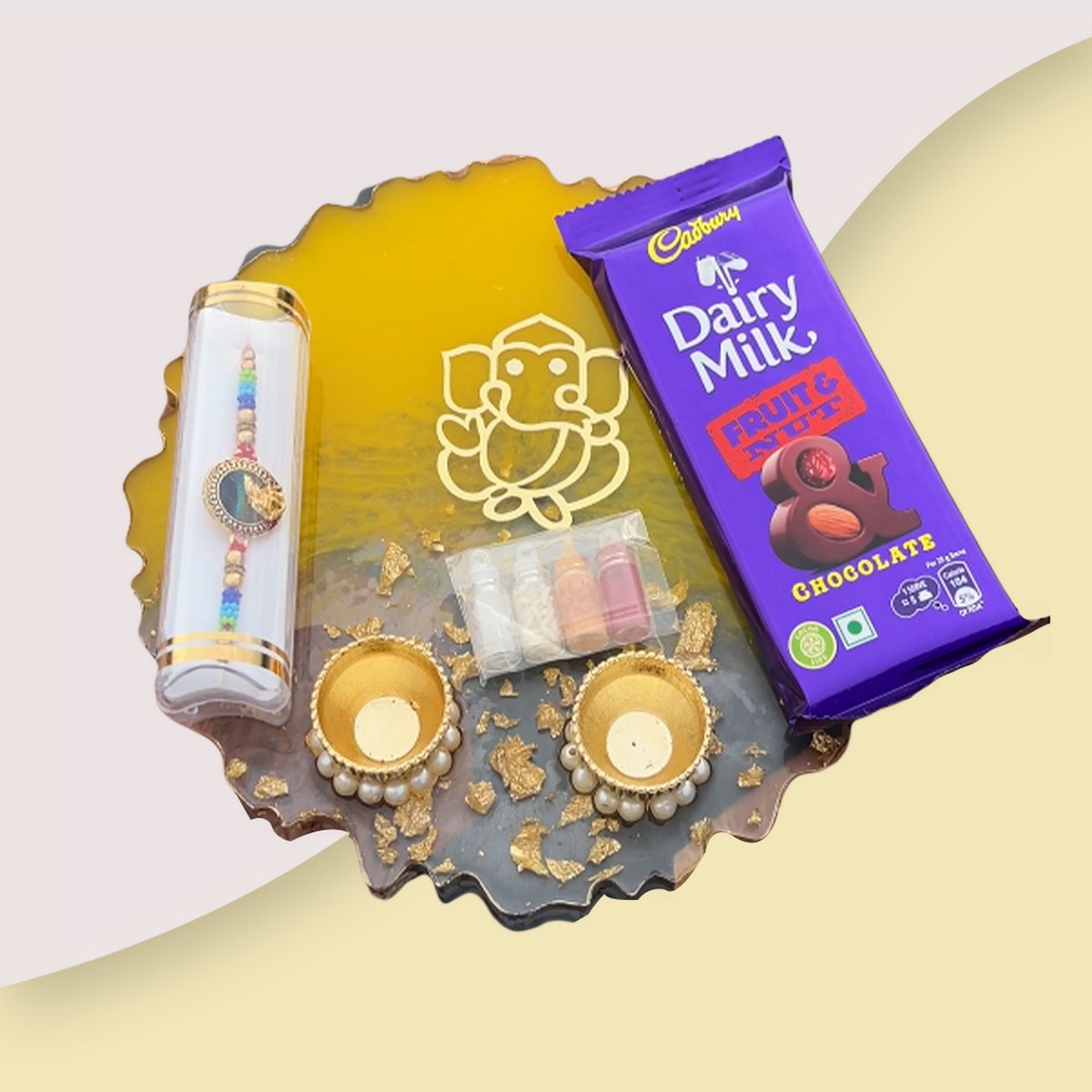 Raksha Bandhan Pooja Platter – Yellow and Transparent Rakhi Special Pooja Platter