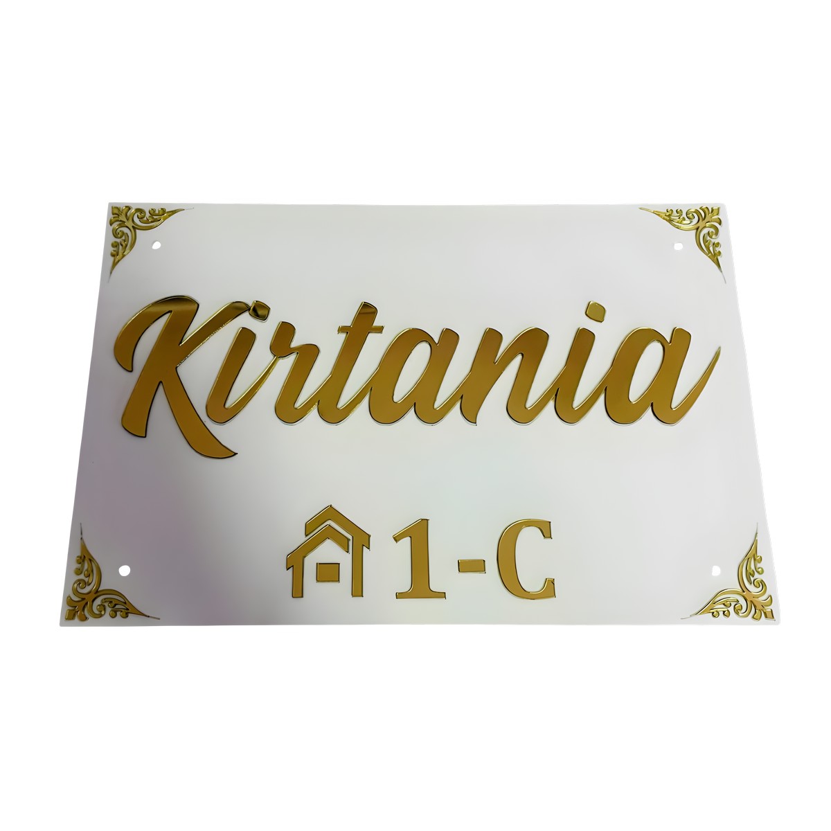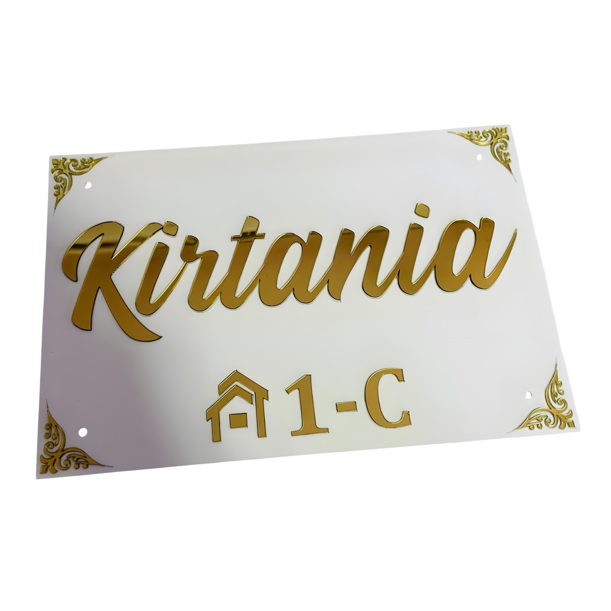 This is a White and Golden Acrylic Home Name Plate, designed in white & golden colour acrylic sheet. The plate will be customized as per the customer requirements.