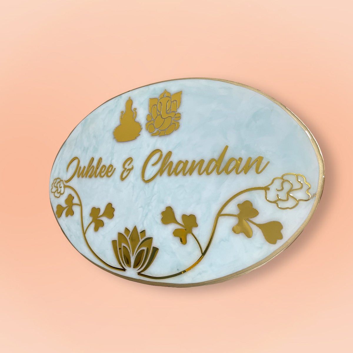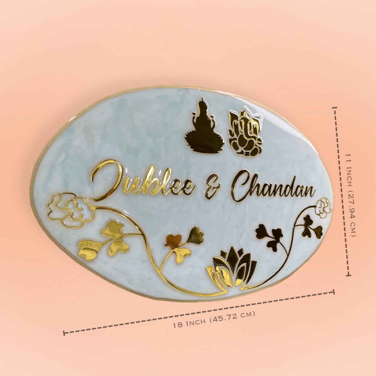 ✨✨ Elevate your space with our stunning Pastel Green and White Laxmi Ganesh Theme Resin Nameplate! 🌿💚 Perfect for adding a touch of elegance and positivity to your home, this beauty is not just a nameplate, it’s a vibe! 🏡✨ Grab yours now and let the good vibes flow! 💖 This handmade name plate is made up of premium epoxy resin material, with glossy finish, Available in many languages. Premium quality nameplate for your home/flat/bungalow. Suitable for installation in sun, rain and termite exposed areas.