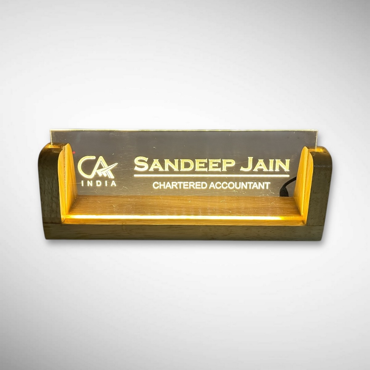 Customized with CA Sandeep Jain, it is ideal for clinics, consultation rooms, and professional workspaces. The illuminated design ensures your name stands out while maintaining a classy and professional appearance.
