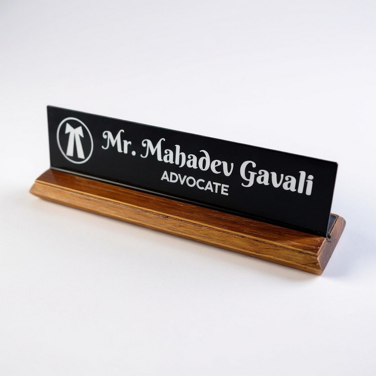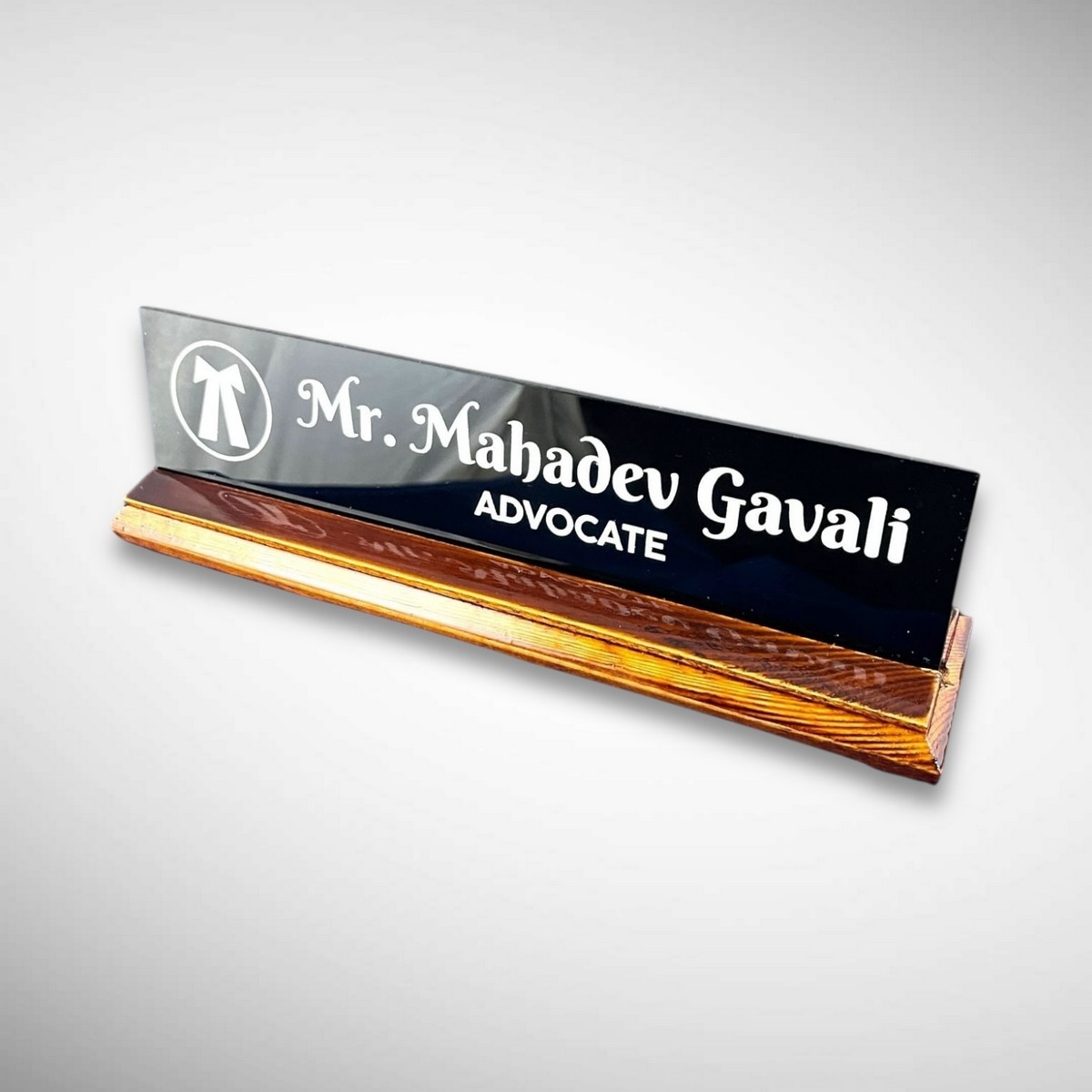 Premium Wooden Acrylic Desk Nameplate for Advocate