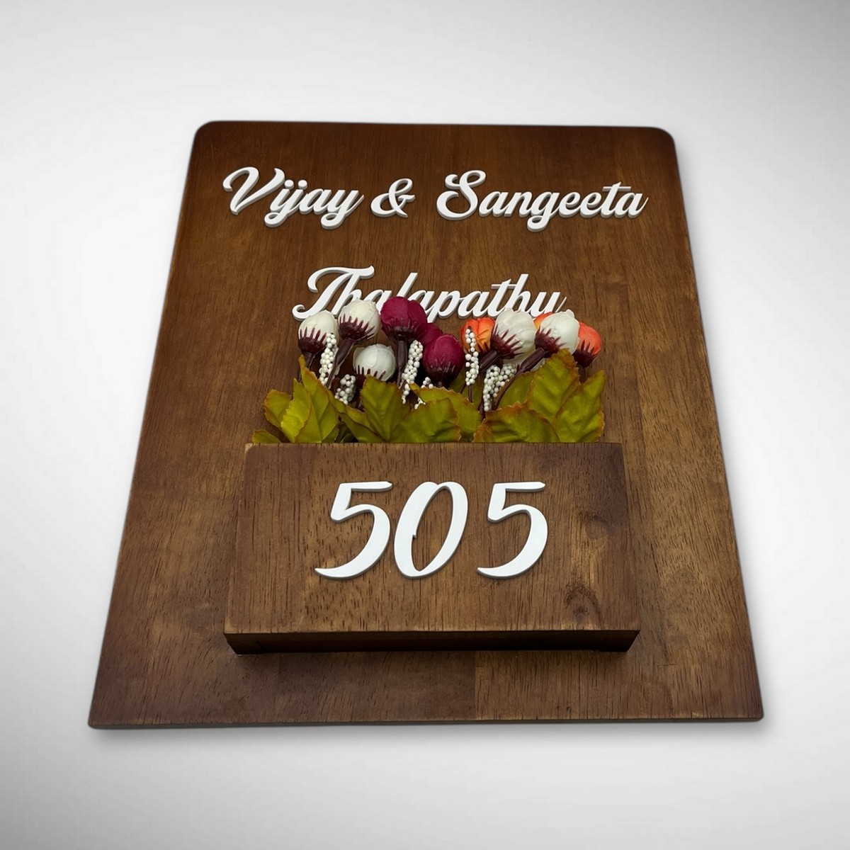 Rubber Wood Brown Polish Planter Nameplate – Thalapathy Design