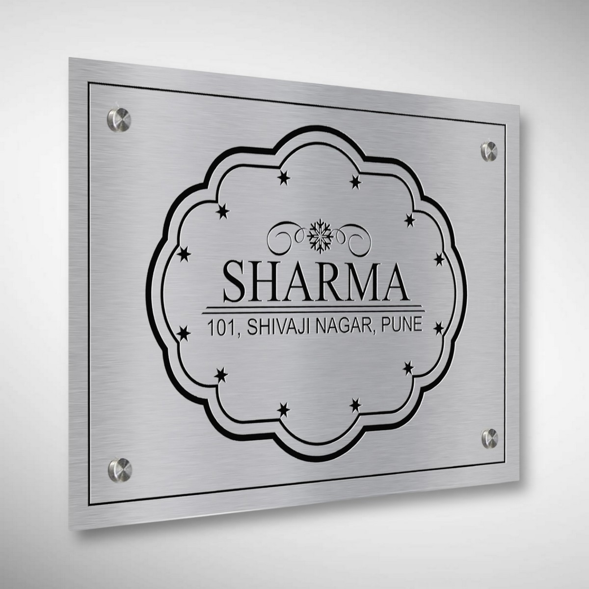 Stainless Steel Etched Sharma Nameplate with Premium Duco Paint Finish