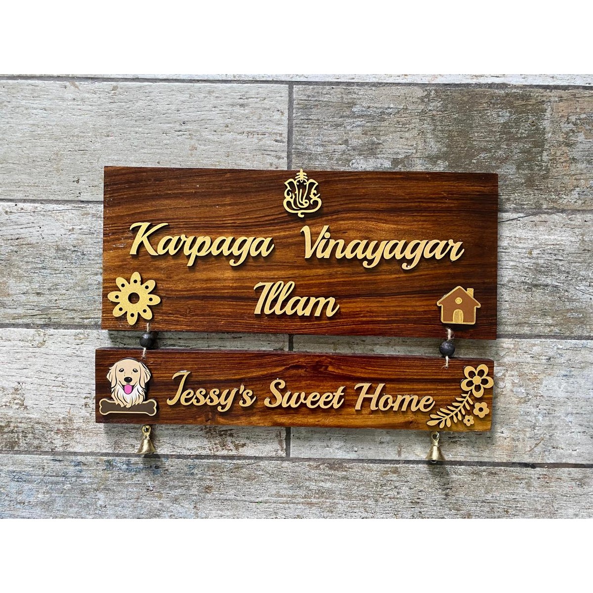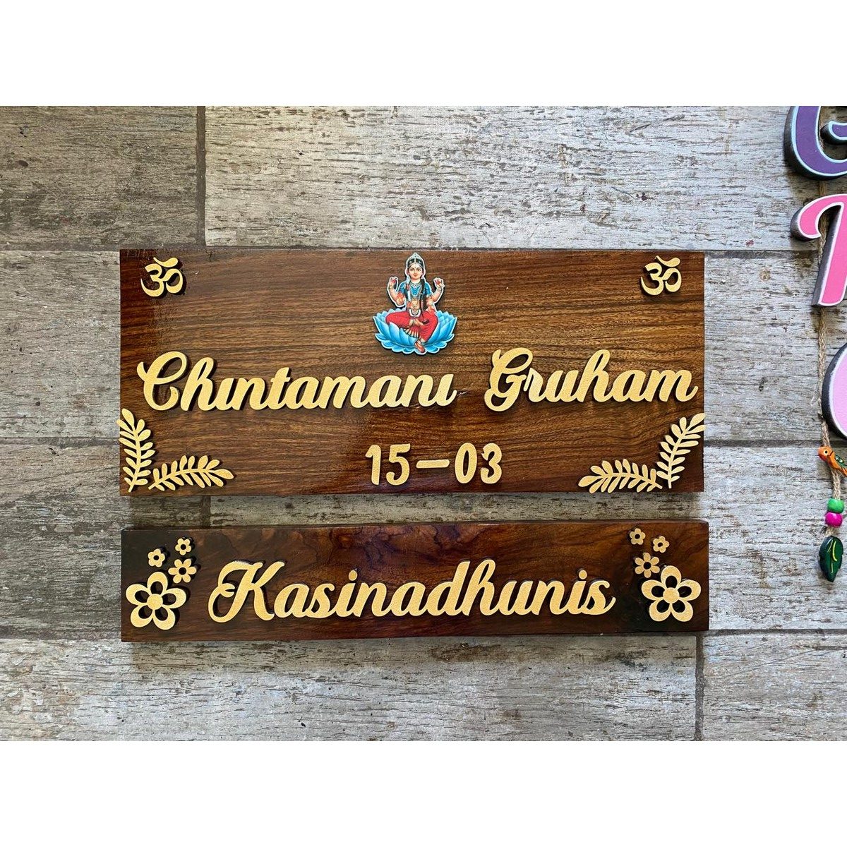 Two-Tier Sheesham Wood Nameplate With Laser Cut Names. We have made this design for a scholar, with a number of qualifications in his name. It was fun to work on such a project. We have used a Sheesham wood base that gives a very elegant and rich look. The letters are laser cut with MDF wood And painted in Antique golden color. The nameplate gives a very beautiful and welcoming look to your home entrance. Please clean it with a dry cloth or dry soft bristles brush.