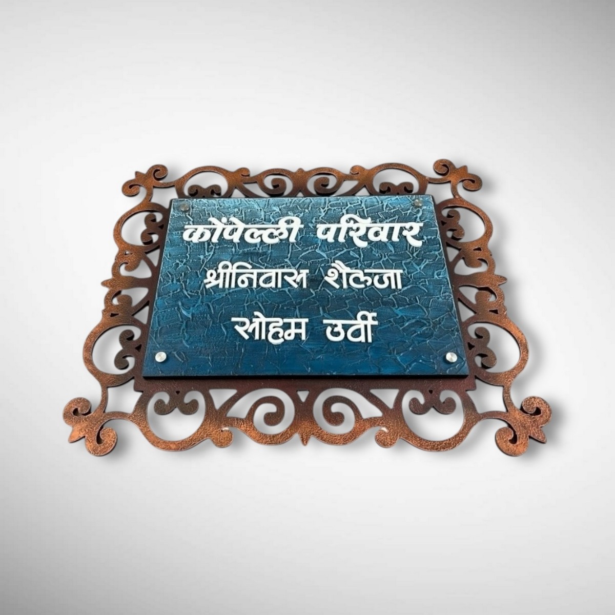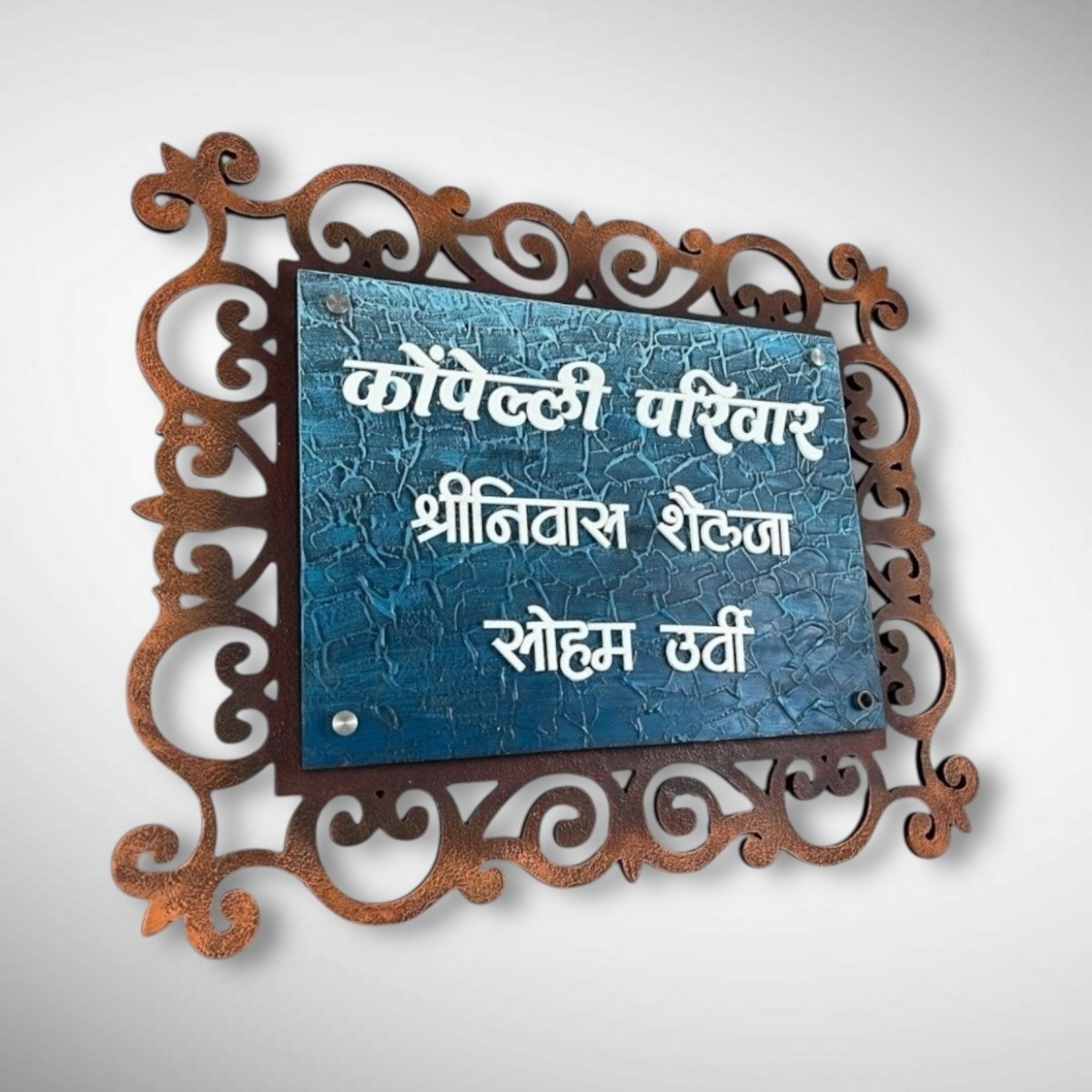 Ideal for apartments, villas, and bungalows, the Kompelli Pariwar Nameplate is weather-resistant and customizable, making it perfect for both modern and traditional Indian homes.