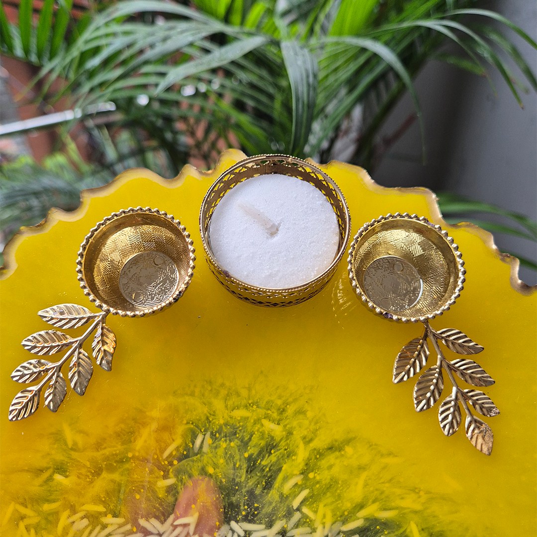 🌼 Yellow Theme Festive Resin Pooja Thali