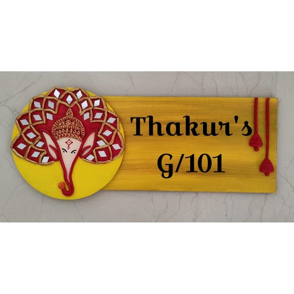 New Beautiful Ganesha Lippan Art Nameplate – Handmade for You